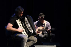 Nuno Carpinteiro, acordeonista e compositor, com dois álbuns de estúdio em nome próprio e David Rodrigues, guitarrista intérprete e integrante de uma mão cheia de projetos de baile tradicional, apresentam-se em formato duo e intimista. Estes dois músicos, que juntos já percorreram o norte e sul do país, resultado dos vários projetos onde tocam juntos (Nuno Carpinteiro Trio, Balsol) apresentam no seu repertório, temas tradicionais e originais preparados para dançar a pares, quadrilhas, linhas e em grupo. Um convite aberto a todos, com ou sem experiência.